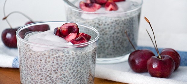 In a small mason jar combine the ingredients, stir and refrigerate overnight. Top with fruit and serve.